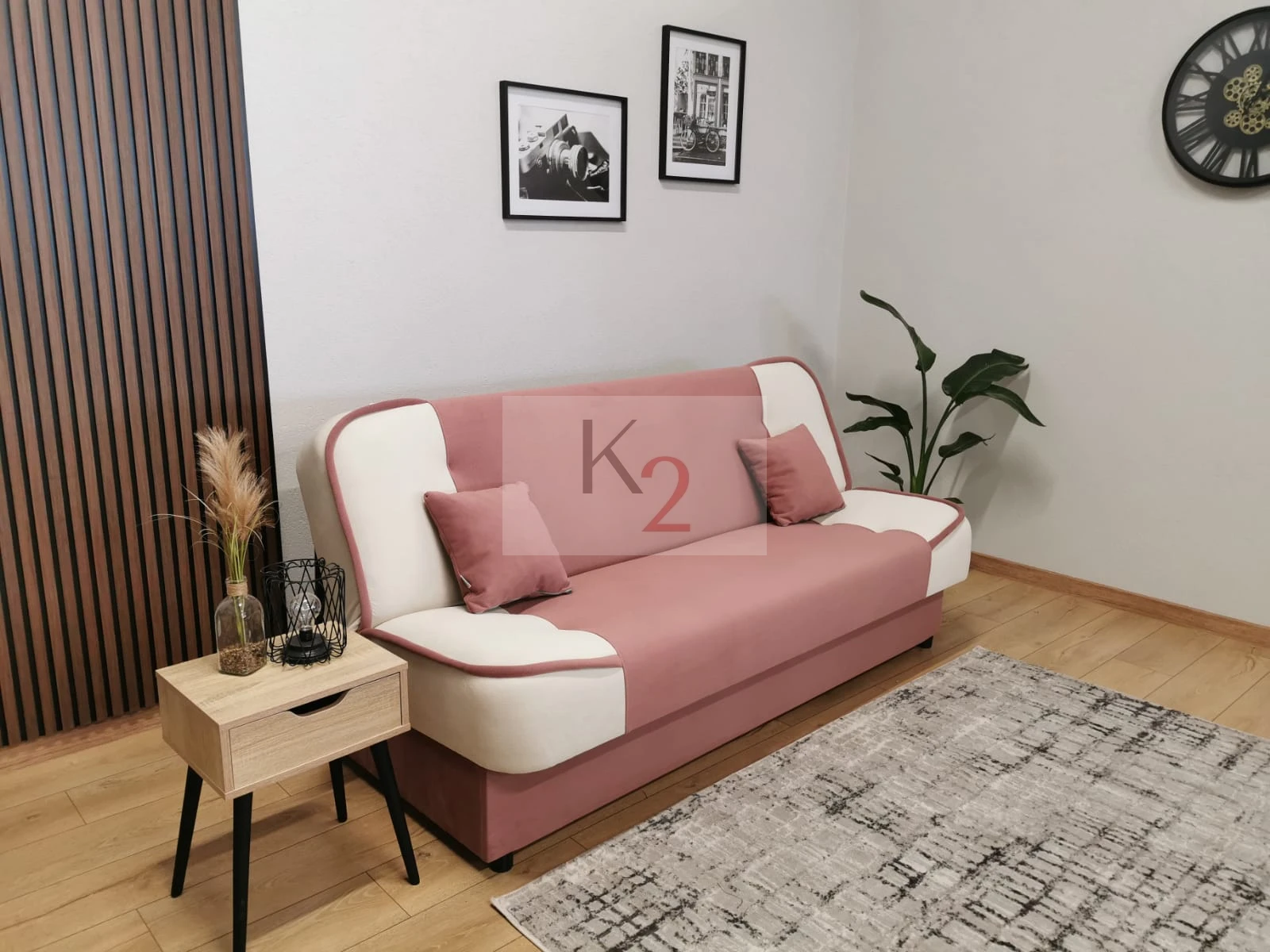 Klasyczna rozkładana kanapa, która sprawdzi się w salonie oraz pokoju dziennym. Wygodna, łatwa w codziennym użytkowaniu. Wysokie oparcie gwarantuje solidne podparcie dla całych pleców.