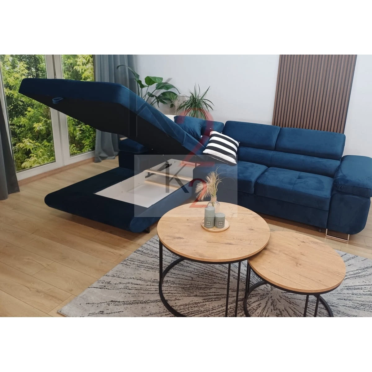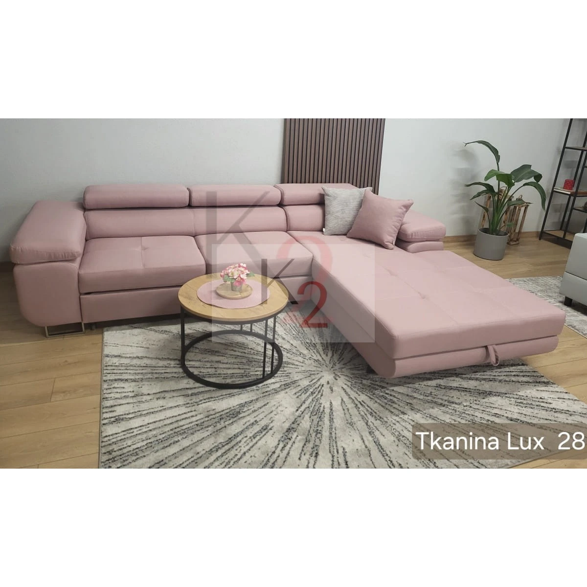 - Narożnik jest wolnostojący- tył obity w tkaninach mebla, może stać w centrum pomieszczenia