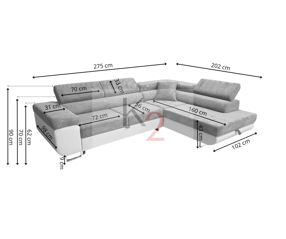 - Narożnik jest lewo lub prawostronny- wybraną stronę podajemy w momencie zamówienia zgodnie z obrazkiem w galerii