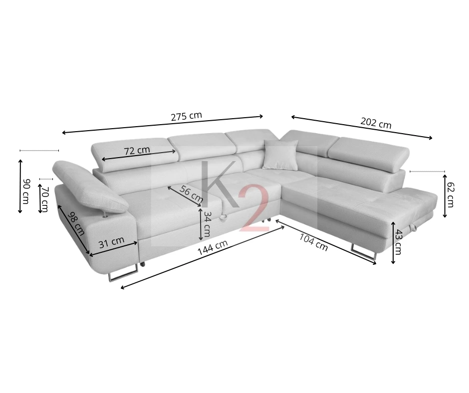 - Narożnik jest lewo lub prawostronny- wybraną stronę podajemy w momencie zamówienia zgodnie z obrazkiem w galerii