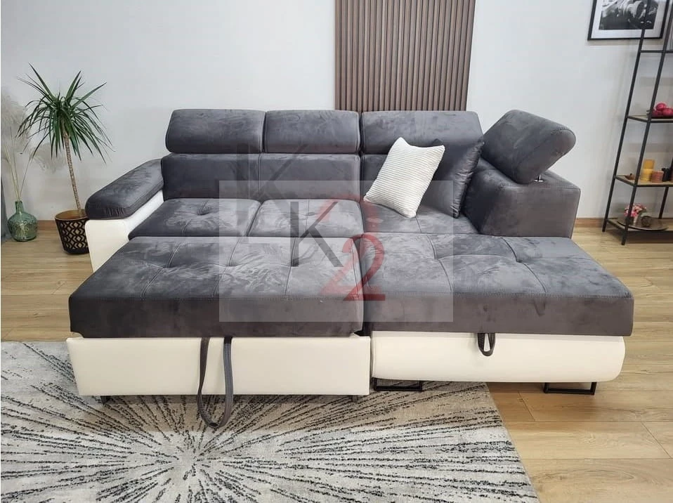 - Funkcja spania ze sprężynami (wygodny mechanizm rozkładania umożliwiający szybkie rozłożenie narożnika)
