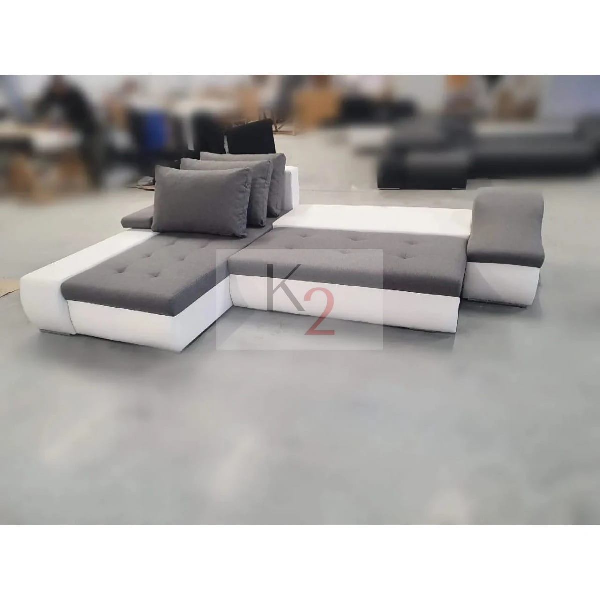 - Narożnik jest wolnostojący- tył obity w tkaninach mebla, może stać w centrum pomieszczenia