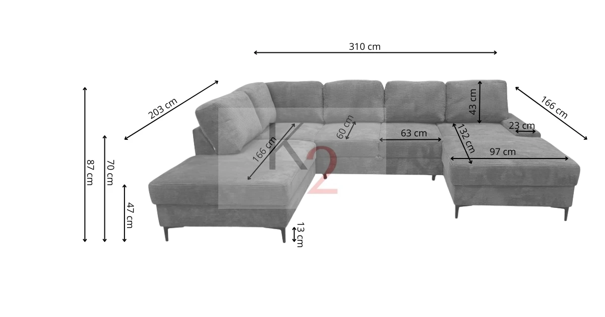 - Narożnik jest wolnostojący- tył obity w tkaninach mebla, może stać w centrum pomieszczenia