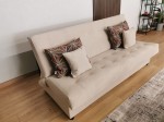 Wypełnienie siedziska sprężyną zapewni wygodne siedzenie i spanie. Pojemnik na pościel oraz funkcja spania umożliwią Ci zapewnienie gościom wygodnego odpoczynku. Modne kolory sprawią, że dopasuje się również do pokoju młodzieżowego. Dwa jaśki dołączone do zestawu dopełniają mebel.