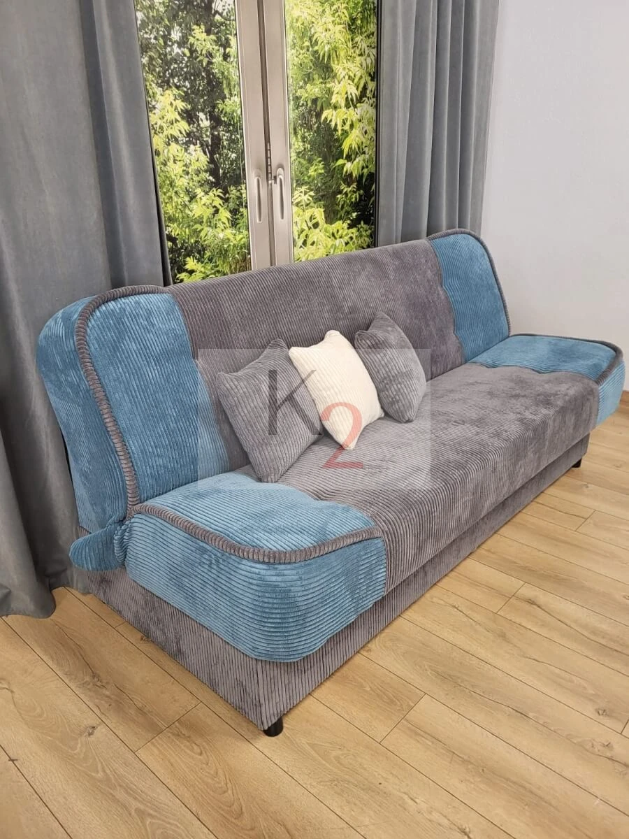 Wypełnienie siedziska sprężyną zapewni wygodne siedzenie i spanie. Pojemnik na pościel oraz funkcja spania umożliwią Ci zapewnienie gościom wygodnego odpoczynku. Modne kolory sprawią, że dopasuje się również do pokoju młodzieżowego. Dwa jaśki dołączone do zestawu dopełniają mebel.